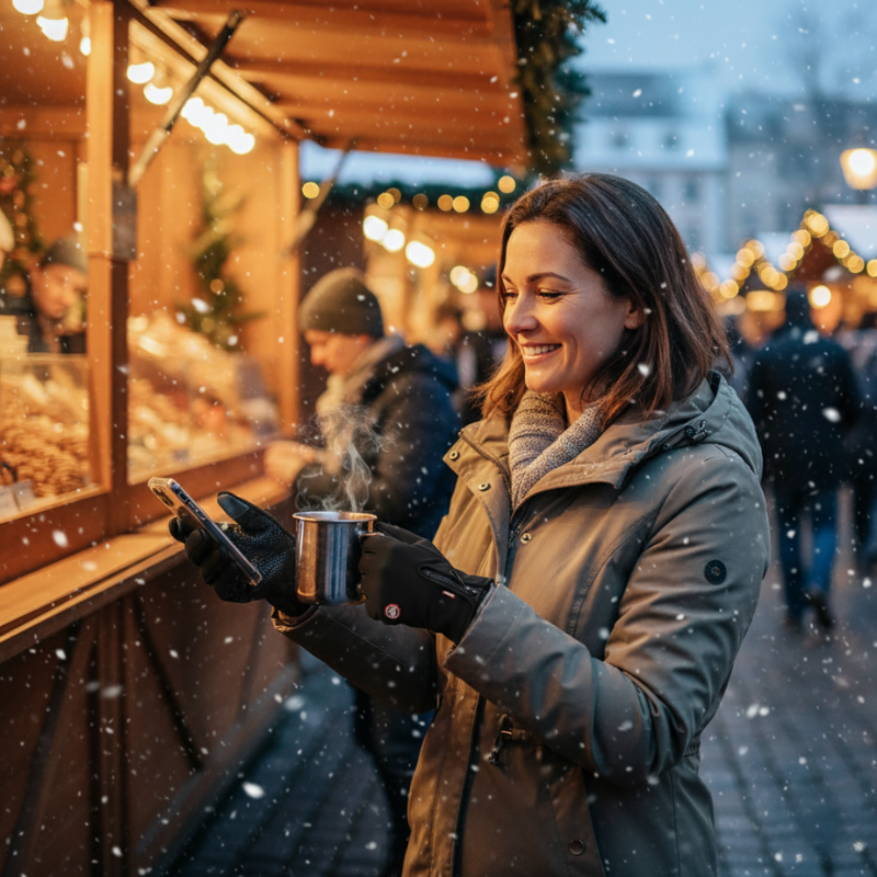 Stell dir vor, du stehst draußen. Der Wind pfeift dir ins Gesicht, die Kälte kriecht in deine Finger. Du ziehst die Hände in die Taschen – doch es hilft kaum. Dann schlüpfst du in unsere Thermohandschuhe: weiches, warmes Innenfutter umhüllt deine Finger, die Kälte bleibt draußen, die Wärme breitet sich wohltuend aus. Das wasserabweisende Material schützt vor Schnee und Nässe, und dank der Touchscreen-Funktion bleibst du verbunden, ohne frieren zu müssen. Unsere Handschuhe sind mehr als Schutz – sie sind Wärme, die bleibt.